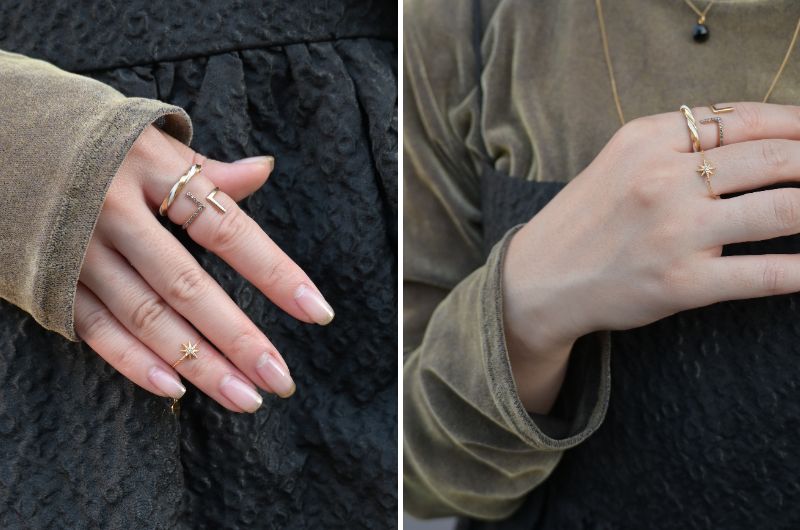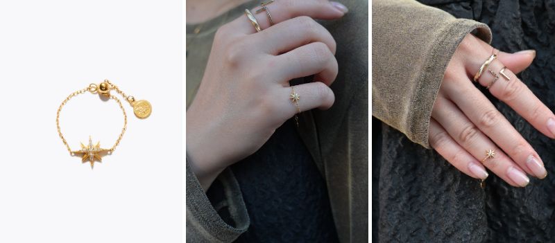 こちらはこのボックスでしか手に入れることができないスペシャルなリングで、どのセットにも必ず入っております。サイズ調節ができるため、ピンキーやファランジとしてアレンジもお楽しみいただけます。