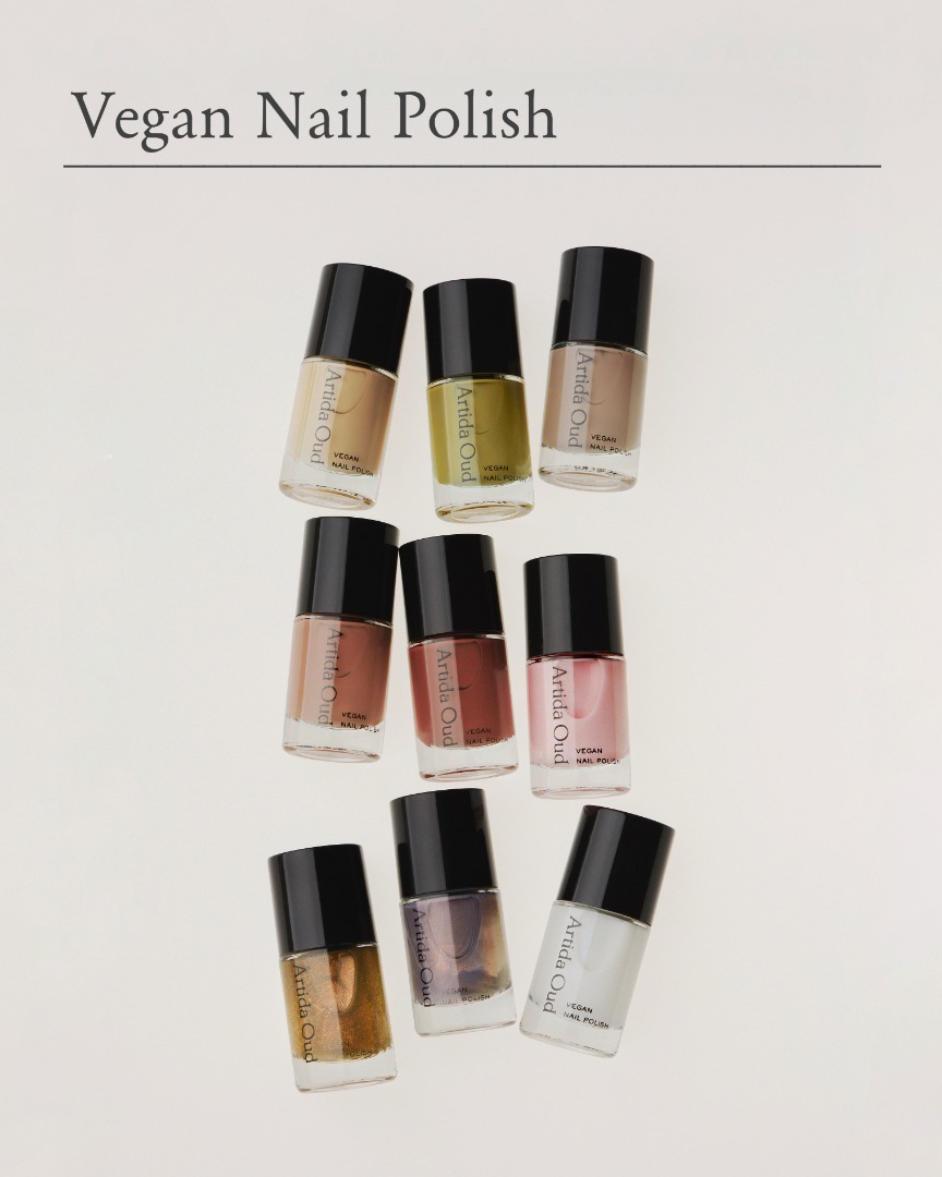 煌めくジュエリーをより一層引き立て、悠久の旅へといざなう、ARTIDA OUDオリジナルのヴィーガンネイルポリッシュも全9色のうち2色ご用意。
