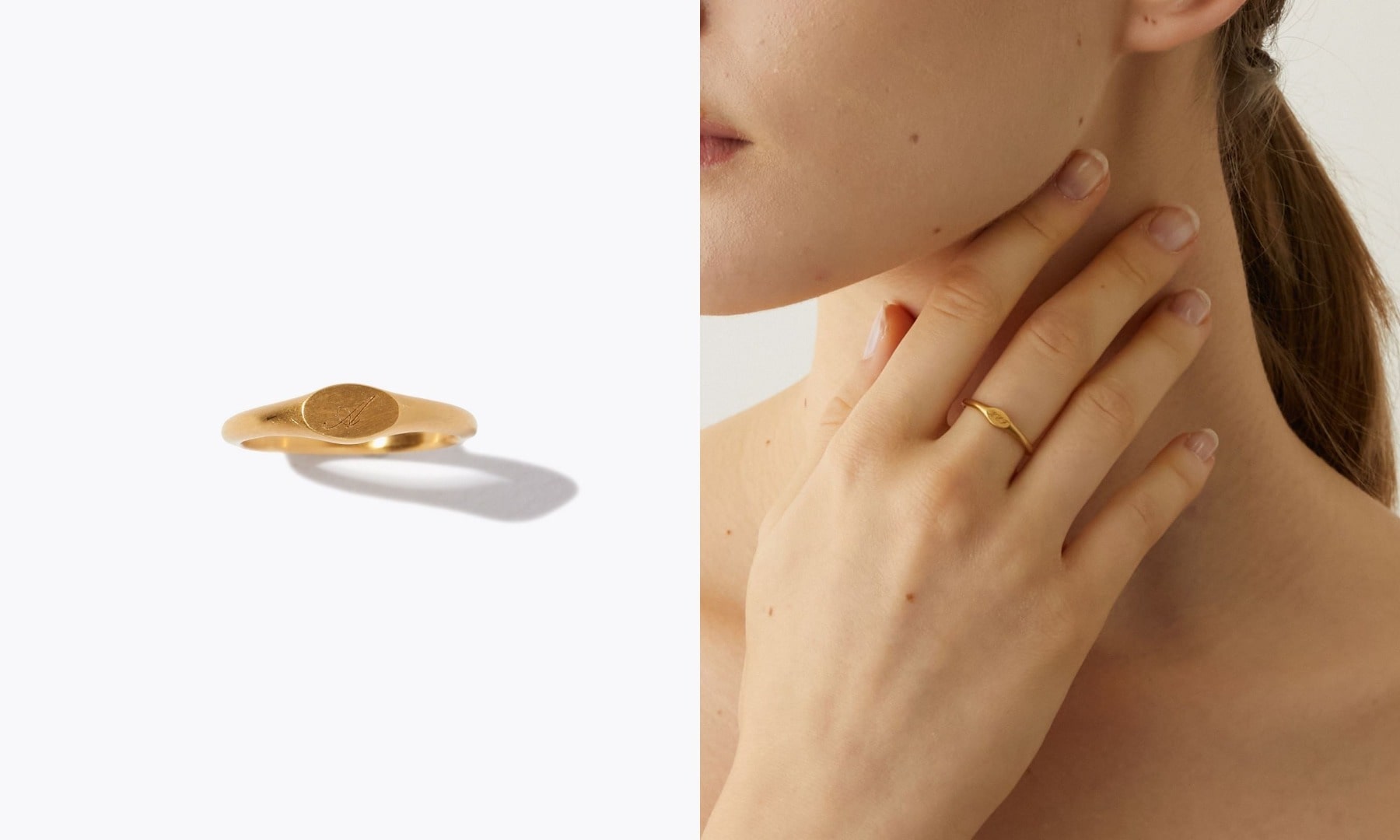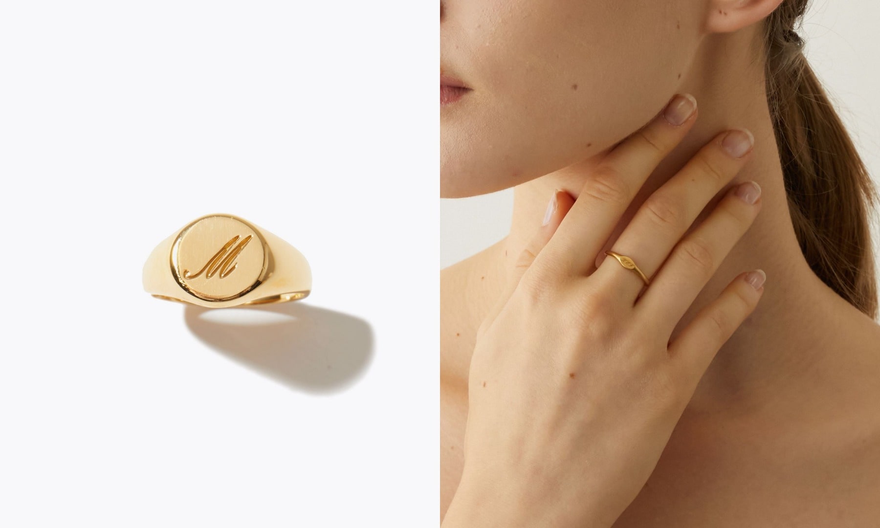アルファベットでイニシャルを刻印できる、華奢でさりげないシグネットリングも新たに登場しました。