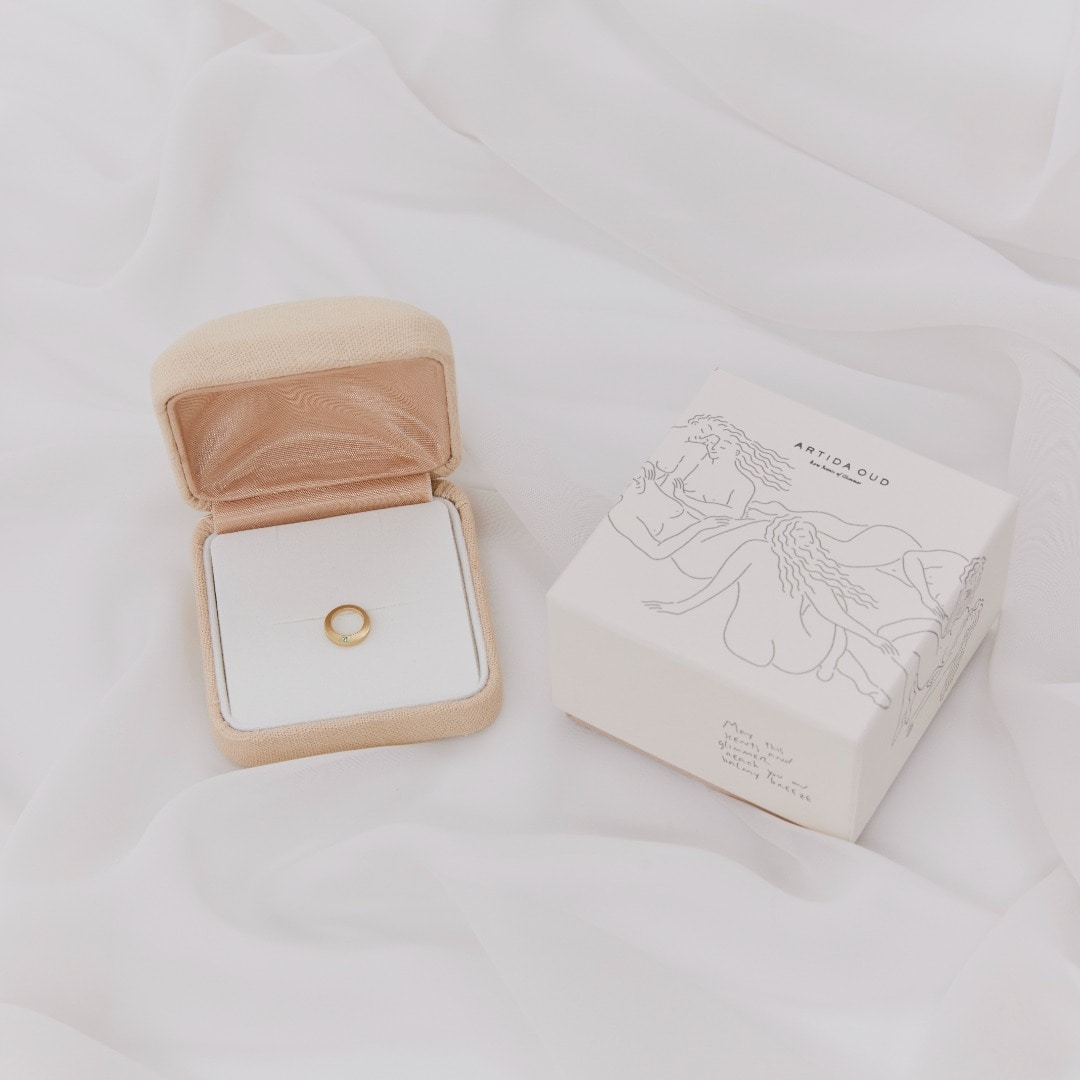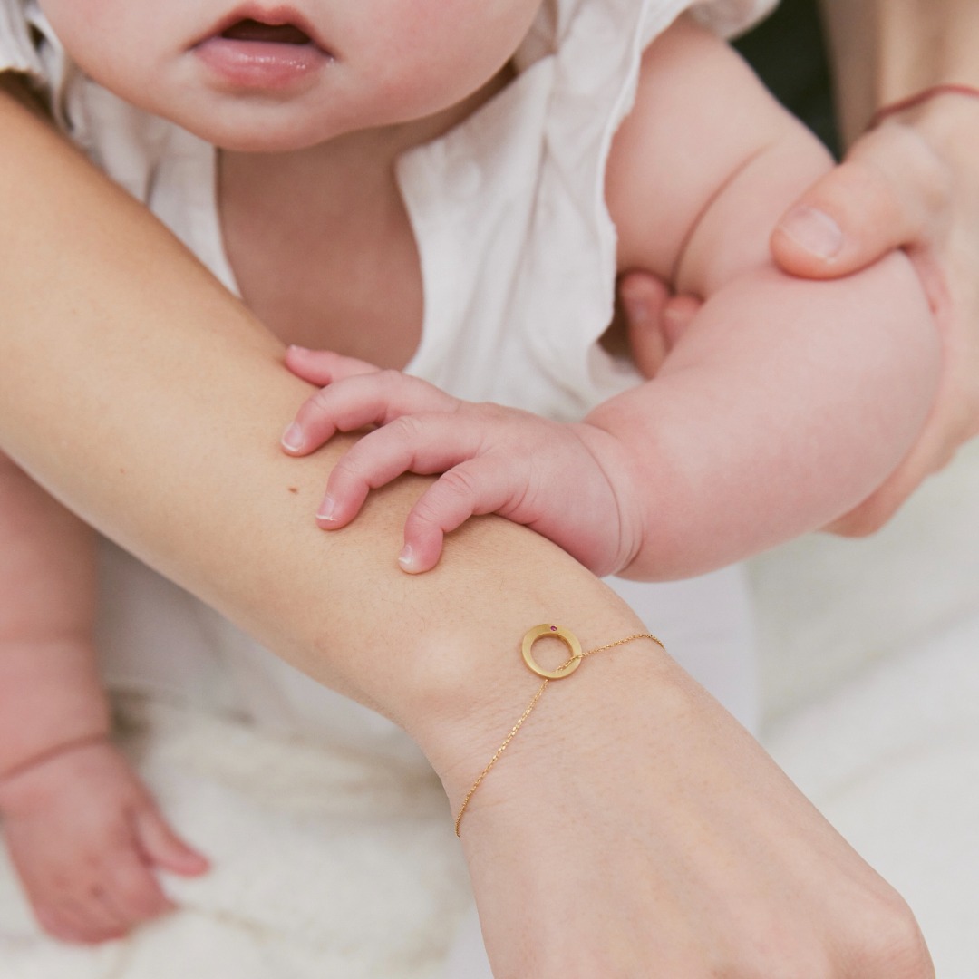 ベビーリングは、赤ちゃんと記念撮影したり、ママやパパがチェーンに付けてネックレスとして身に着けたり、子どもが大きくなった時にプレゼントするなど、出産のお祝いとして親しまれています。ARTIDA OUDでは、お誕生日の星座石をセレクトできるシンプルでモダンなベビーリングをお作りしました。