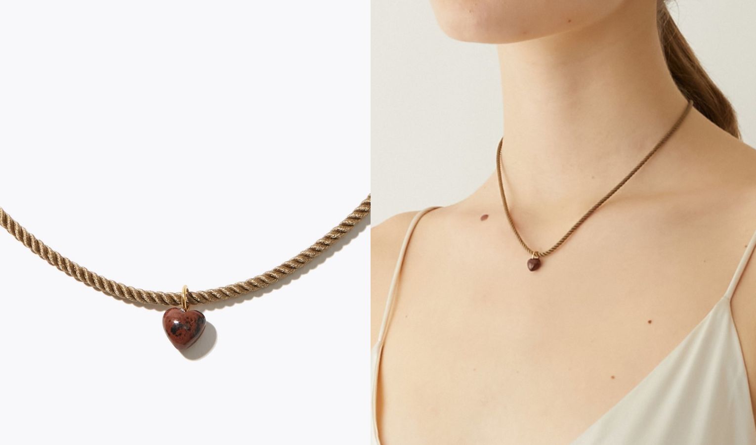 この春の新作は、ぷっくりとしたハートモチーフの天然石チャームを添えたコードネックレス。街中がバレンタインムードに包まれるシーズンにぴったりのジュエリーをお届けします。