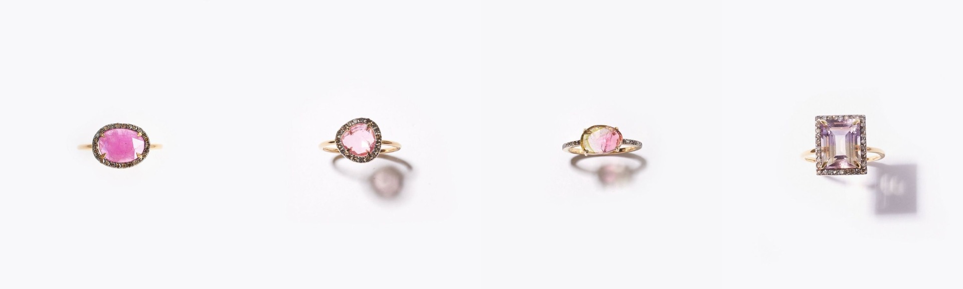 [elafonisi] medium ruby with pave diamonds ring 29,700yen (with tax) /medium pink tourmaline with pave diamonds ring 29,700yen (with tax) /watermelon tourmaline pave diamonds eternity ring 36,300yen (with tax) /rectangle ametrine pave diamonds ring 35,200yen (with tax)