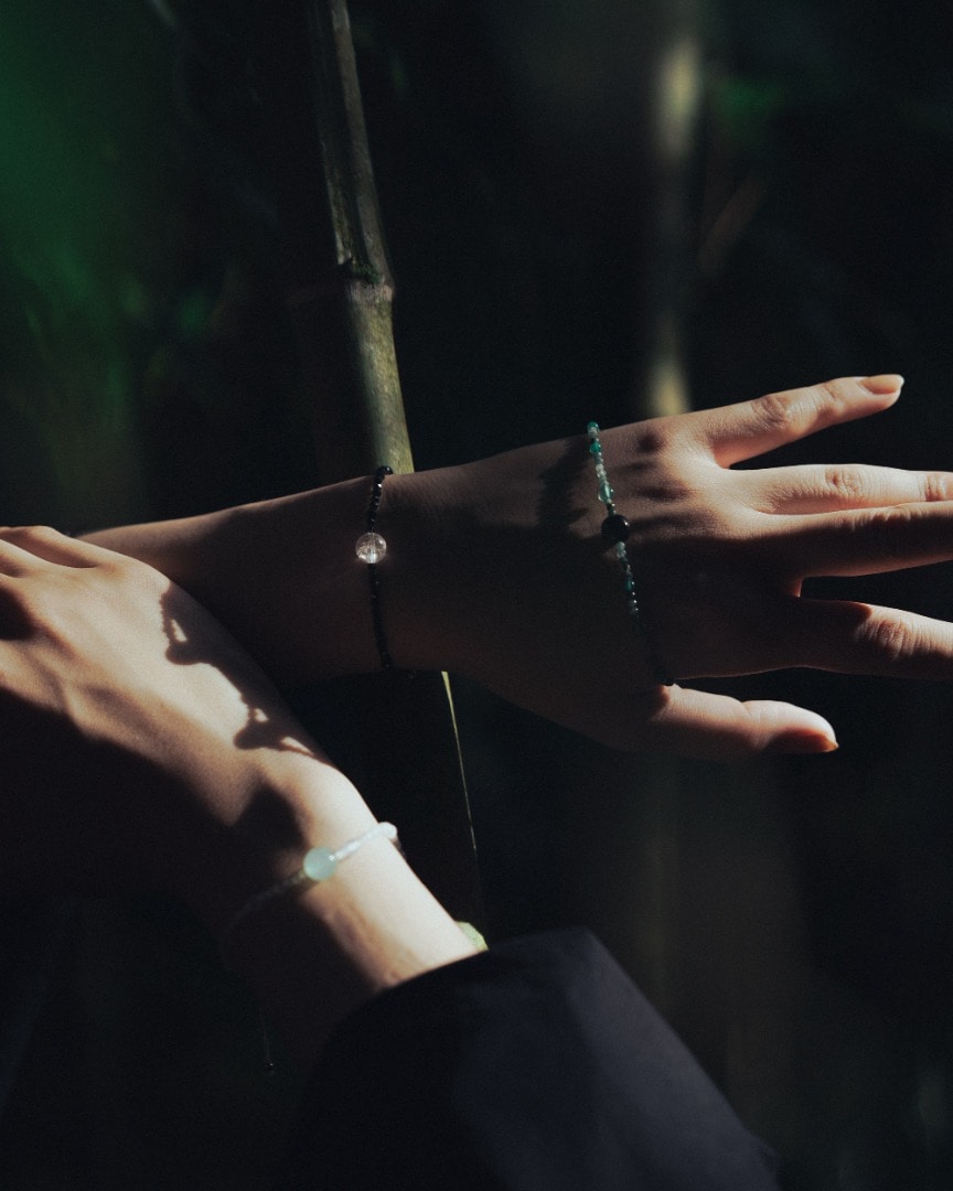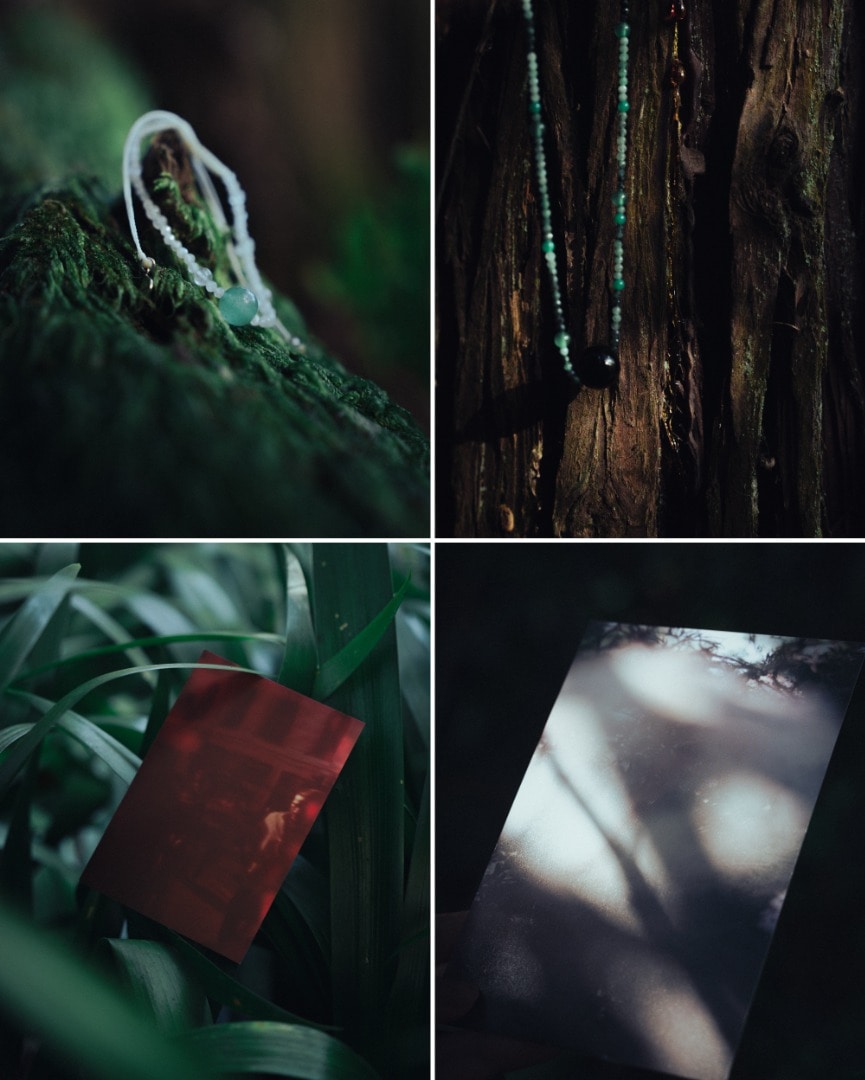 影(光を引き立てる黒)、雨(粒の白)、木(季節や土地によって異なる緑)。移住してからも変わらず毎日カメラを持ち歩き、心を奪われた美しい情景を写真に撮り溜めていました。その中で特に枚数が多かったのがこの3つの情景。今日も明日も当たり前に目に入る、世界のこぼれ落ちそうな美しい風景を喜ぶその態度をそのまま石に閉じ込めて、日々身につけられるようなものを作りたいという気持ちから始まりました。