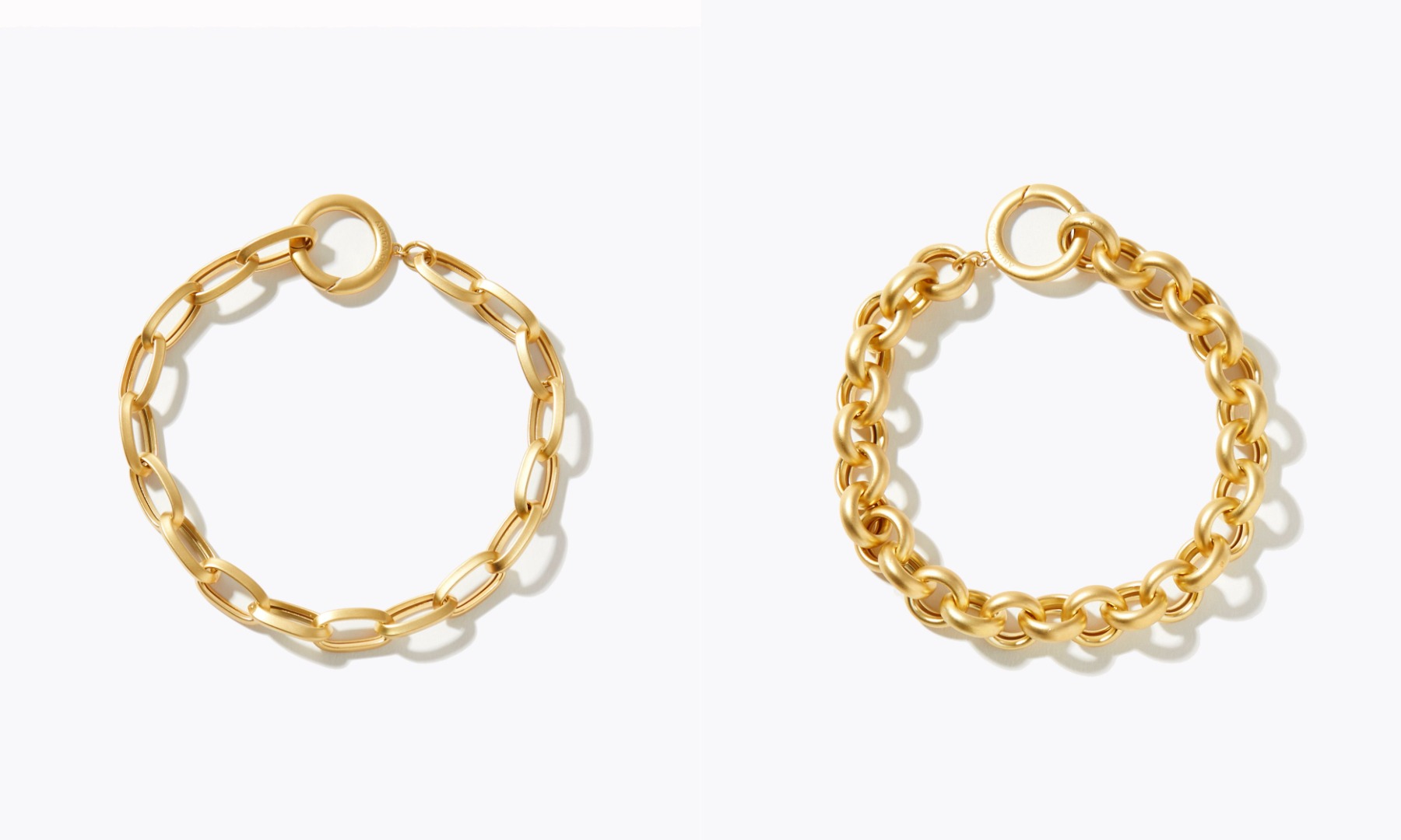 丸みを帯びたフォルムがモダンで力強いラウンドチェーンと、繊細な抜け感と軽やかさをまとったオーバルチェーンのネックレスとブレスレットもご用意しました。