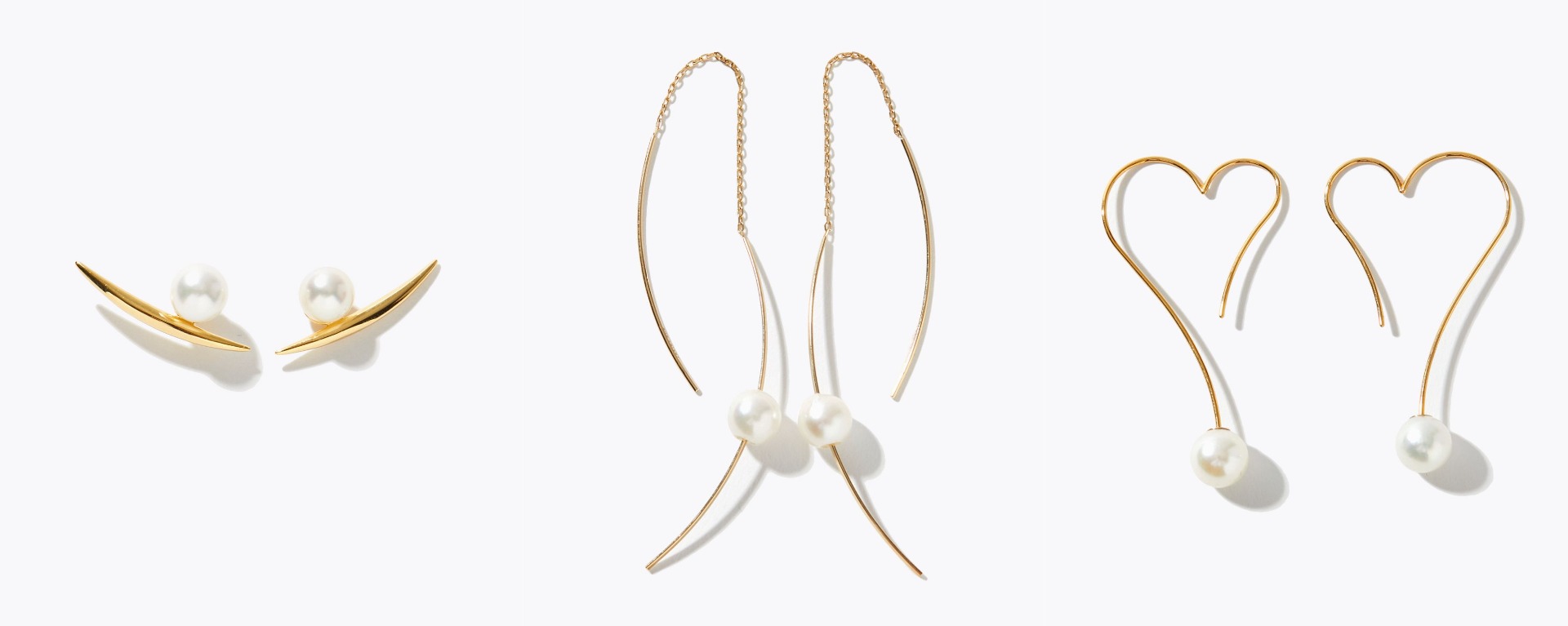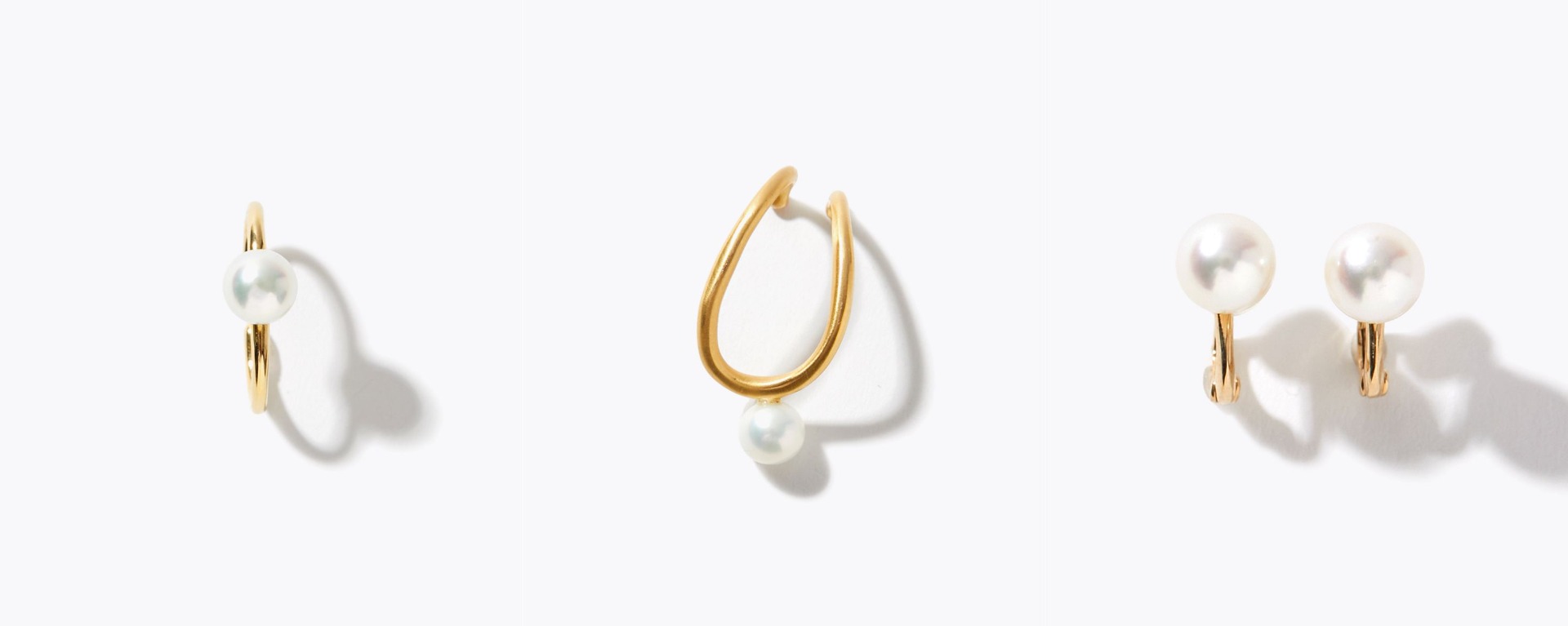 [philia] akoya pearl minimum ear cuff 12,100yen / [philia] akoya pearl organic line ear cuff 14,300yen / [philia] K10 akoya pearl simple ear clip 35,200yen
