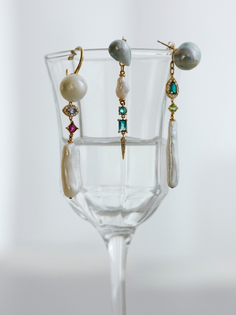[elafonisi] 【2025 Winter Limited】One of a kind K10 akoya pearl multiple stone chandelier pierced earring 44,000yen