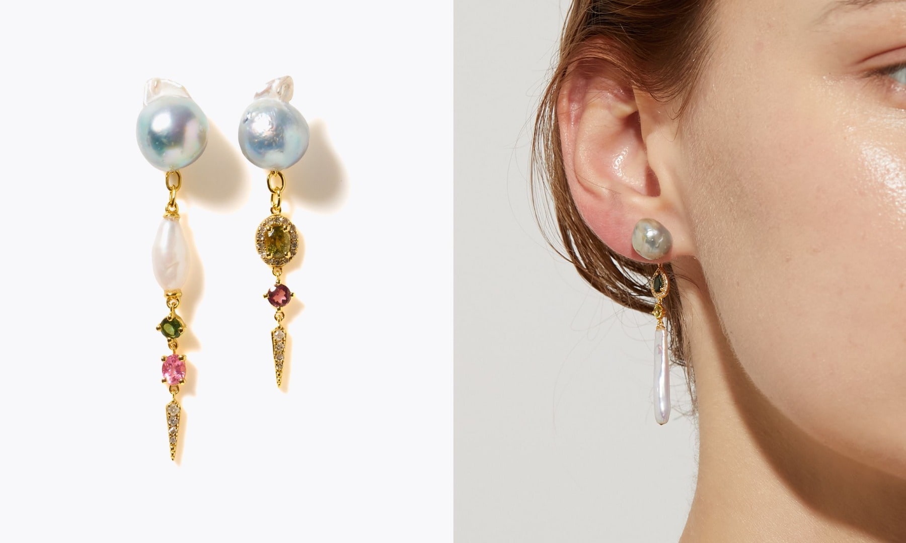 [elafonisi] 【2025 Winter Limited】One of a kind akoya pearl multiple stone chandelier ear clip 39,600yen
