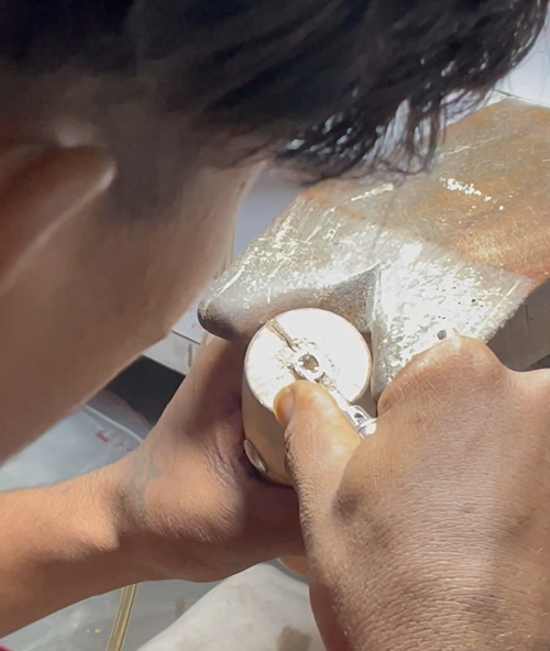 特に私たちがこだわっているベゼルセッティング(覆輪留め)は爪を倒して留める爪留めと違い、石を枠に挟み込むので石が割れるリスクが高く、