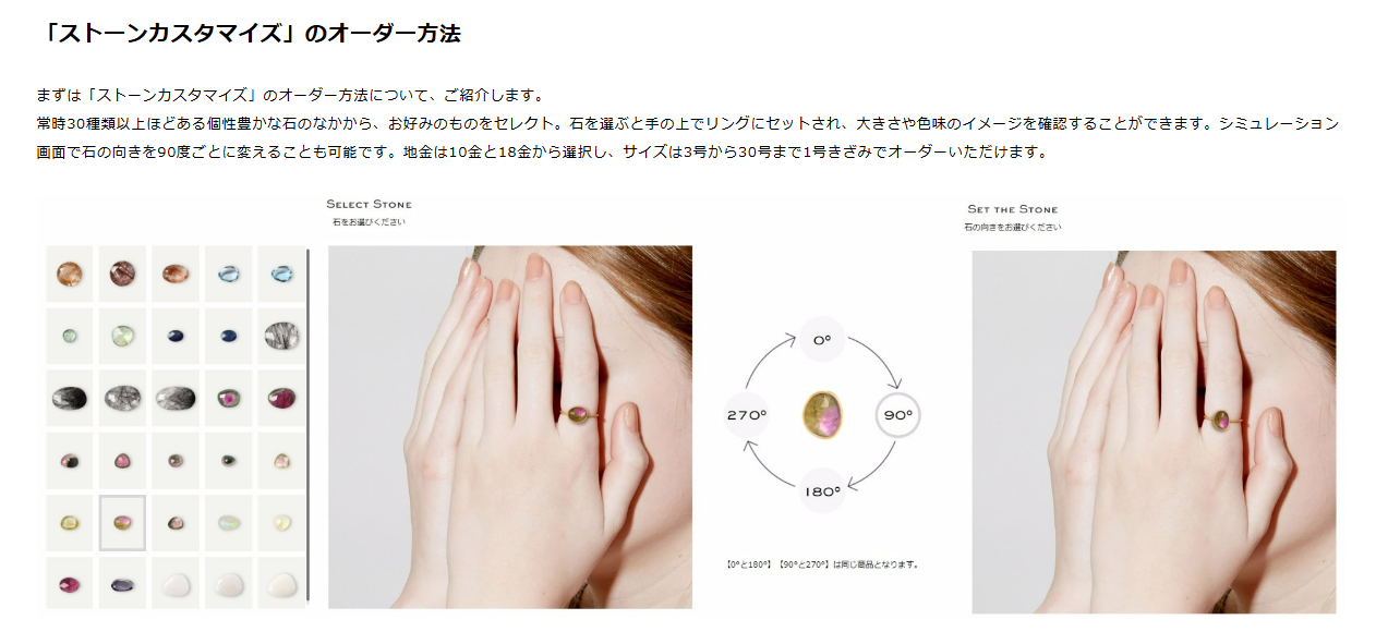 その表情豊かで唯一無二の天然石たちにフォーカスし、かつ、ロスのない商品企画ができないか。そんな発想から「ストーンカスタマイズ」というコンテンツが生まれました。