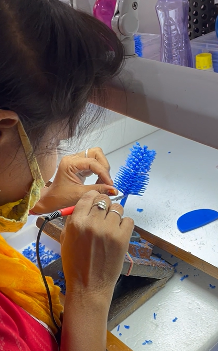 この工程は日本では高額になってしまうため、あまり主流ではありませんが、インドの私たちの工場では、沢山の若者達がこの特殊なつくり方を学び、