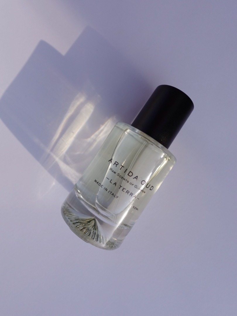 現在の香りは、“La Terra”。ブランド名を象徴する「oud(ウード)=沈香」をイメージした、ウッディ―で大地を思わせる芳香です。 箱を開けた瞬間に“La Terra”のパフュームがふんわり香る、五感を刺激するプレゼンテーションをお楽しみください。