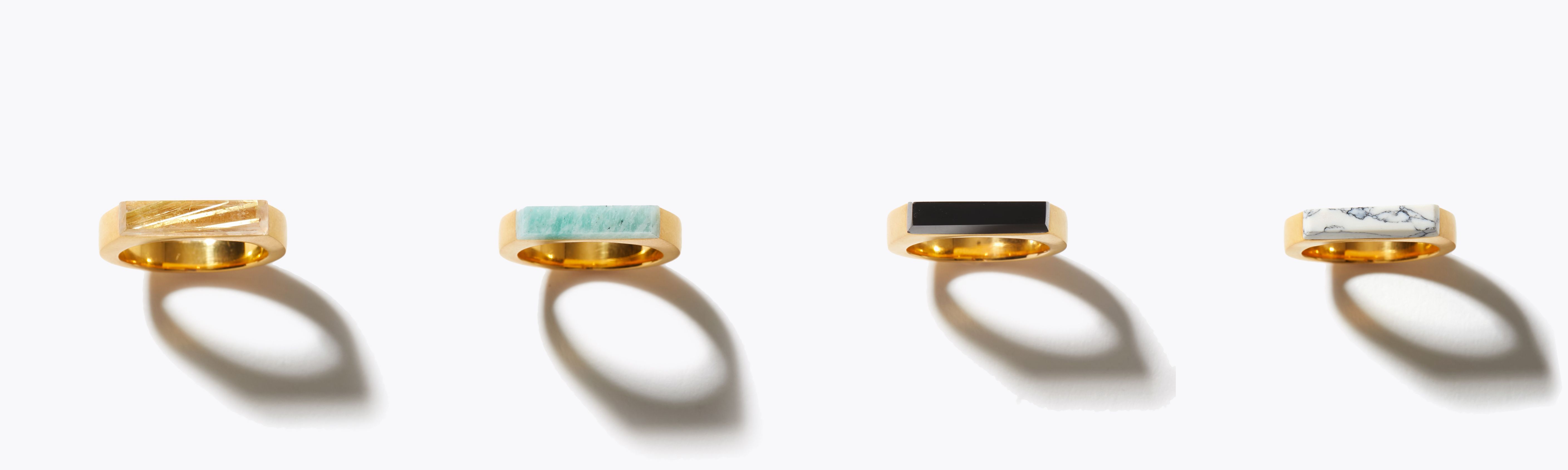 [ancient] flat gold rutilated quartz ring / flat amazonite ring / flat onyx ring / flat howlite ring 33,000yen