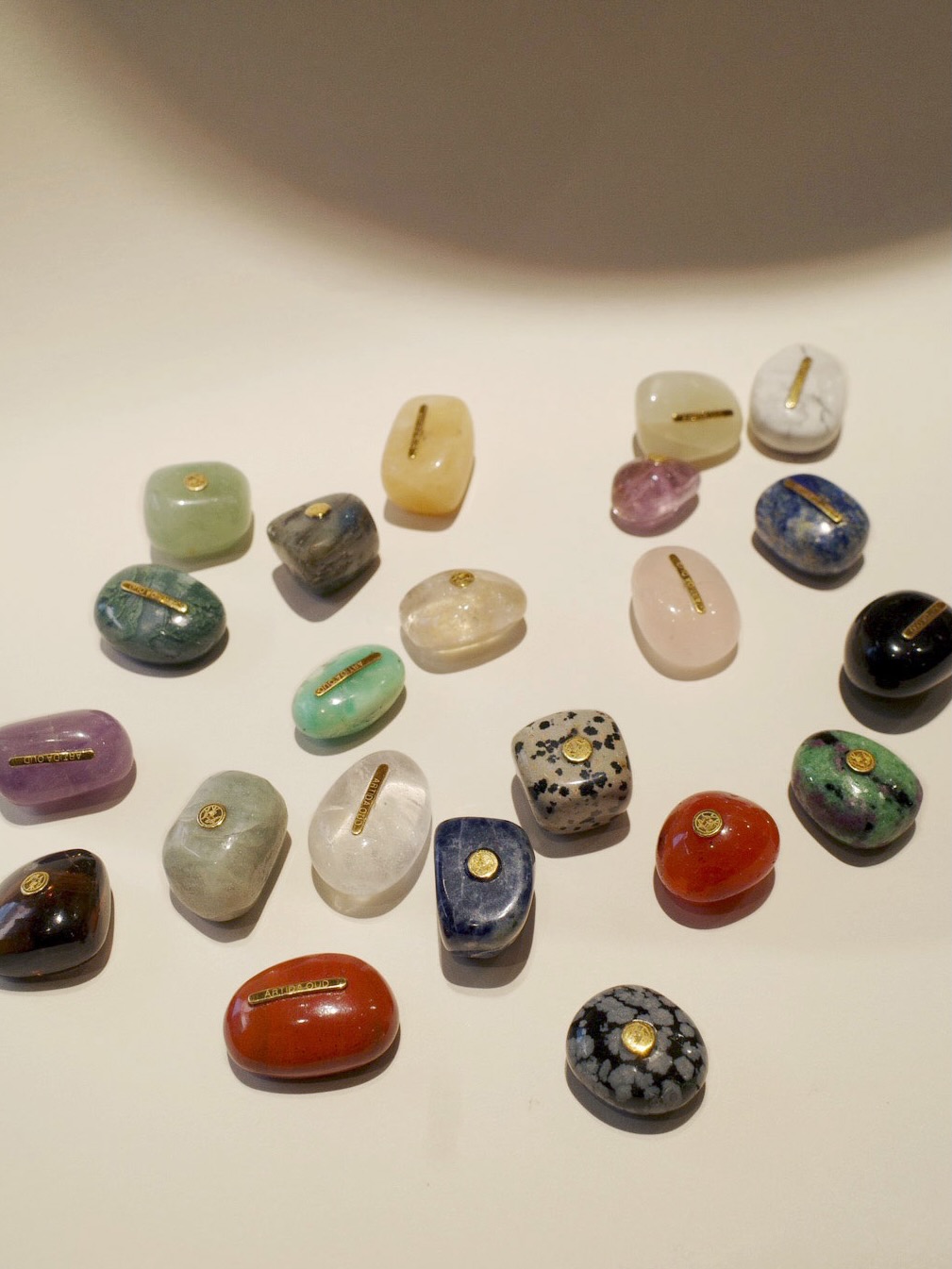 コロンとしたフォルムが魅力的な天然石に、ARTIDA OUDのプレートを添えたお守り。