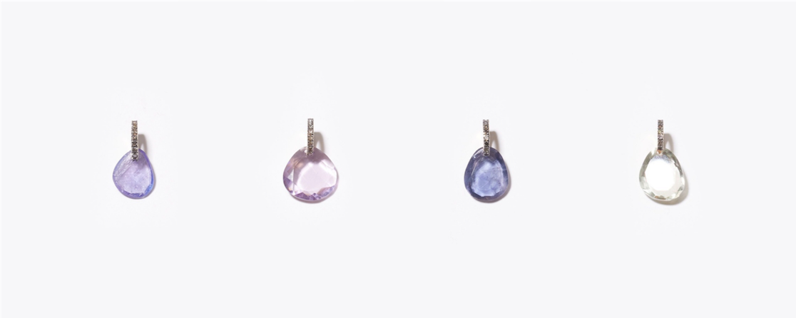 "elafonisi" tanzanite pave diamonds charm 15,120yen (with tax) / "elafonisi" amethyst pave diamonds charm 15,120yen (with tax) / "elafonisi" iolite pave diamonds charm 15,120yen (with tax) / "elafonisi" green quartz pave diamonds charm 15,120yen (with tax)