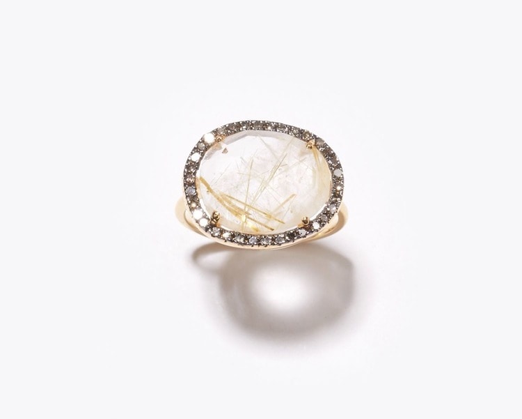 "elafonisi" ゴールドルチルクォーツ パヴェダイヤモンド リング
