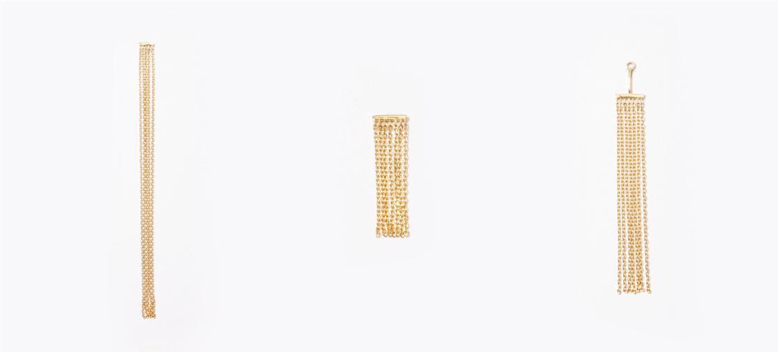 "basic" K10YG fringe chain short pierced earring 19,440yen (with tax) / "basic" K10YG fringe chain long pierced earring 21,600yen (with tax) / "basic" K10 fringe chain ear charm 20,520yen (with tax)