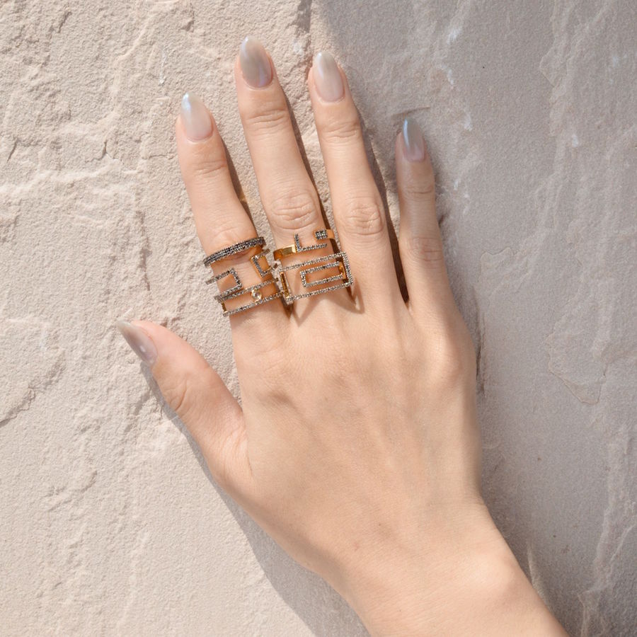 モダンでジオメトリックな新作 “meander”登場――リングのスタッキング・スタイリングをご紹介