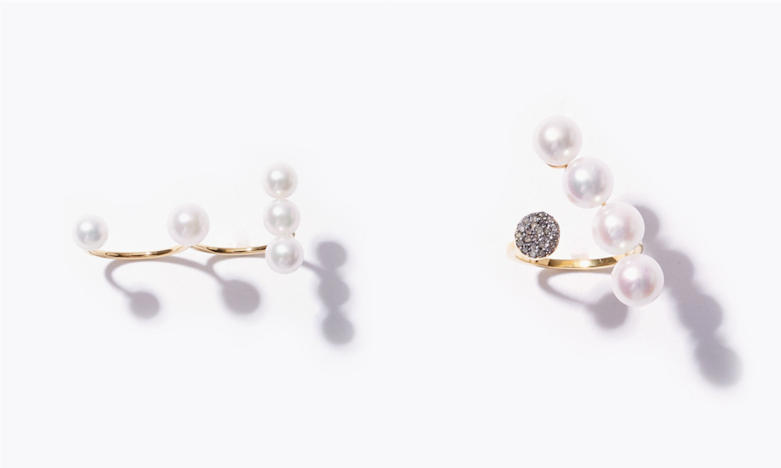 "philia" akoya double finger ring 26,400yen (with tax) / "philia" akoya and selene pave diamonds 26,400yen (with tax)