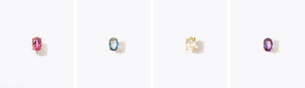 "eden" K10 oval pink tourmaline stud pieced earring 5,500yen (with tax) / "eden" K10 oval london blue topaz stud pierced earring 5,500yen (with tax) / "eden" K10 oval lemon quartz stud pierced earring 5,500yen (with tax) / "eden" K10 oval amethyst stud pierced earring 5,500yen (with tax)