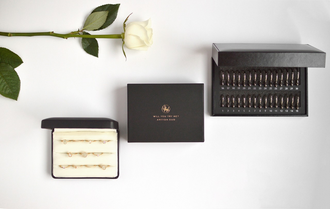 ご希望のサンプルセットをオンラインでご注文後、リングサイザーとともにリングサンプルをお届け。お貸出し期間は7日間。ご注文時にデポジットをいただき、返却後にご返金いたします。