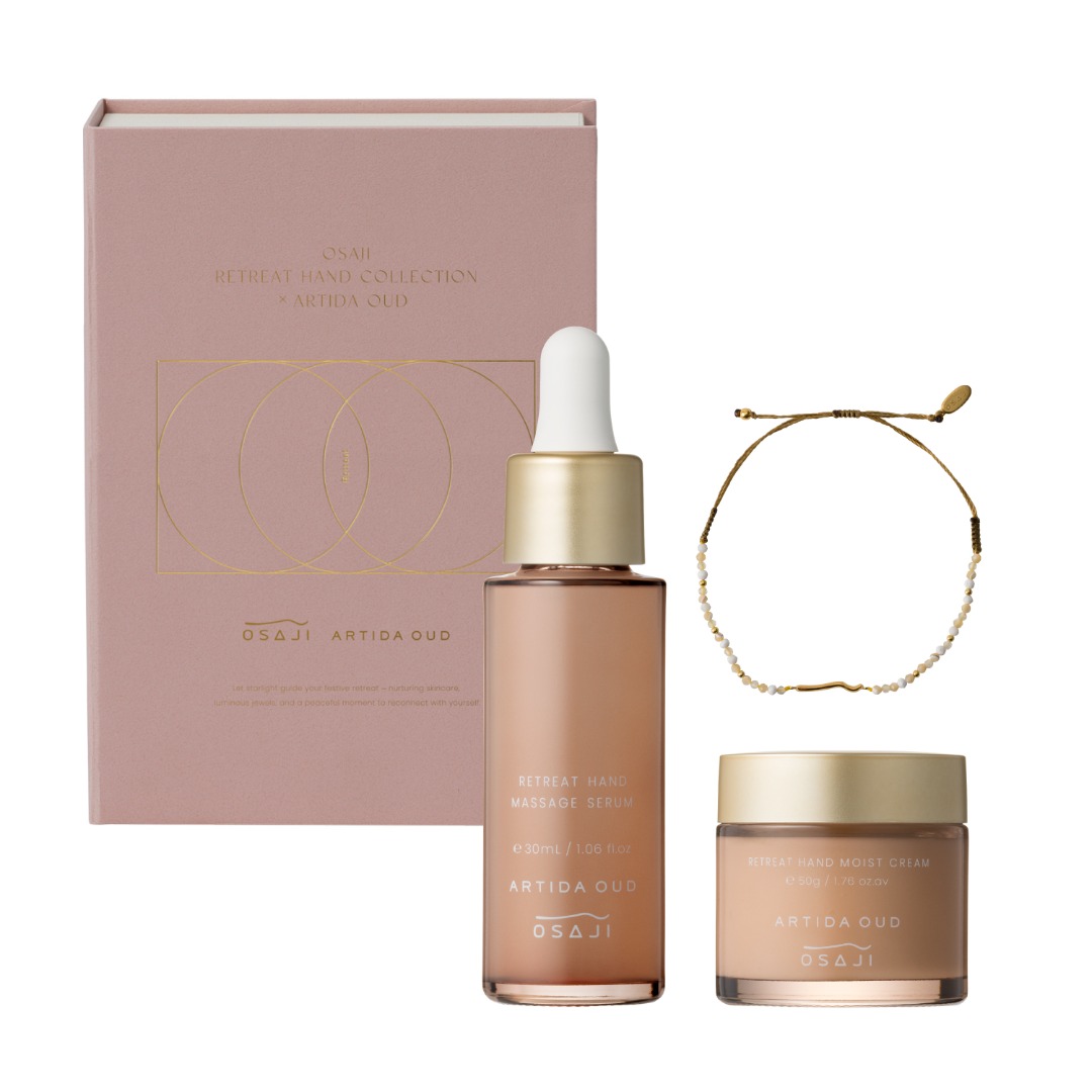 OSAJIで絶大な人気を誇る、リトリートハンドセラムとクリーム、そしてARTIDA OUDの天然石ブレスレットの限定セット。