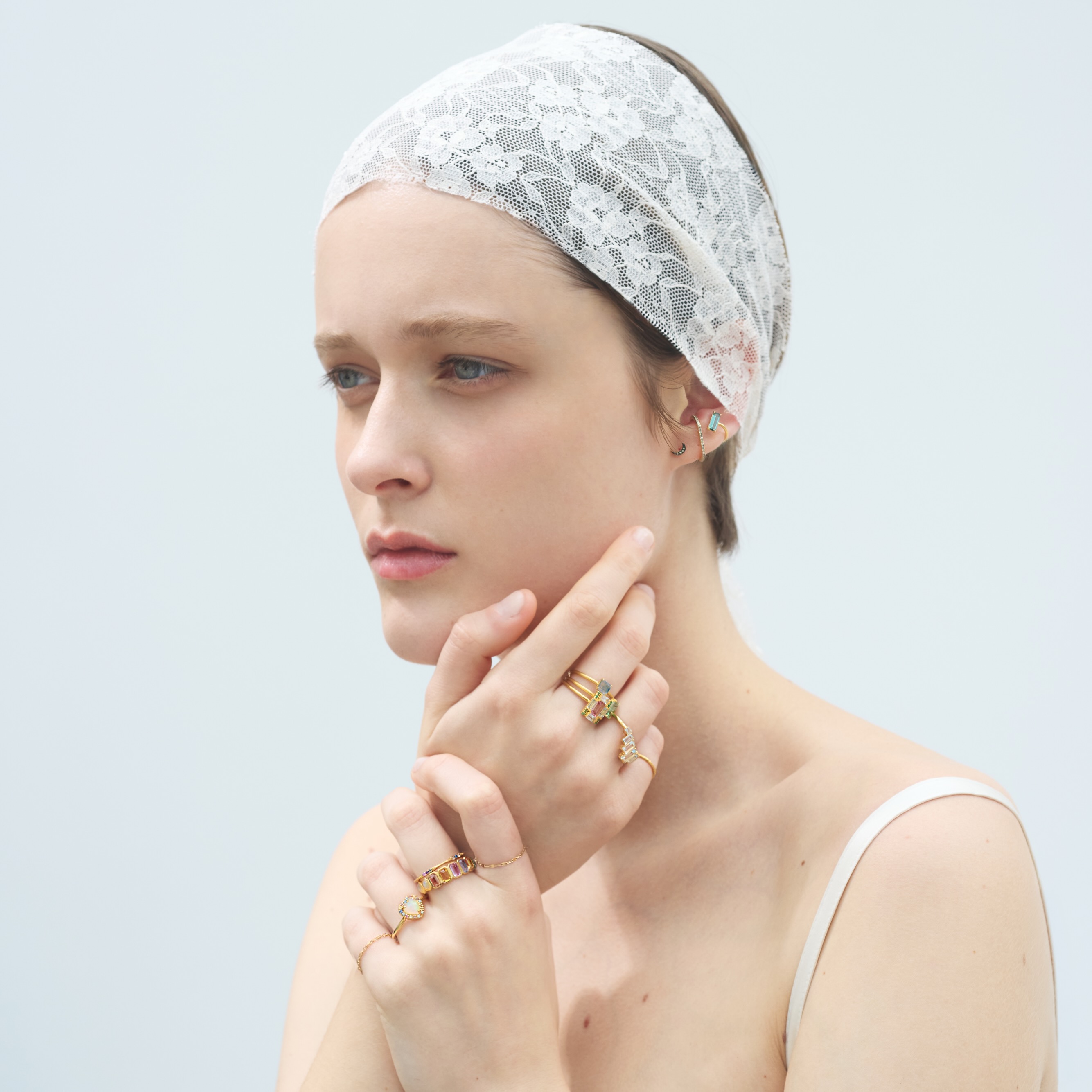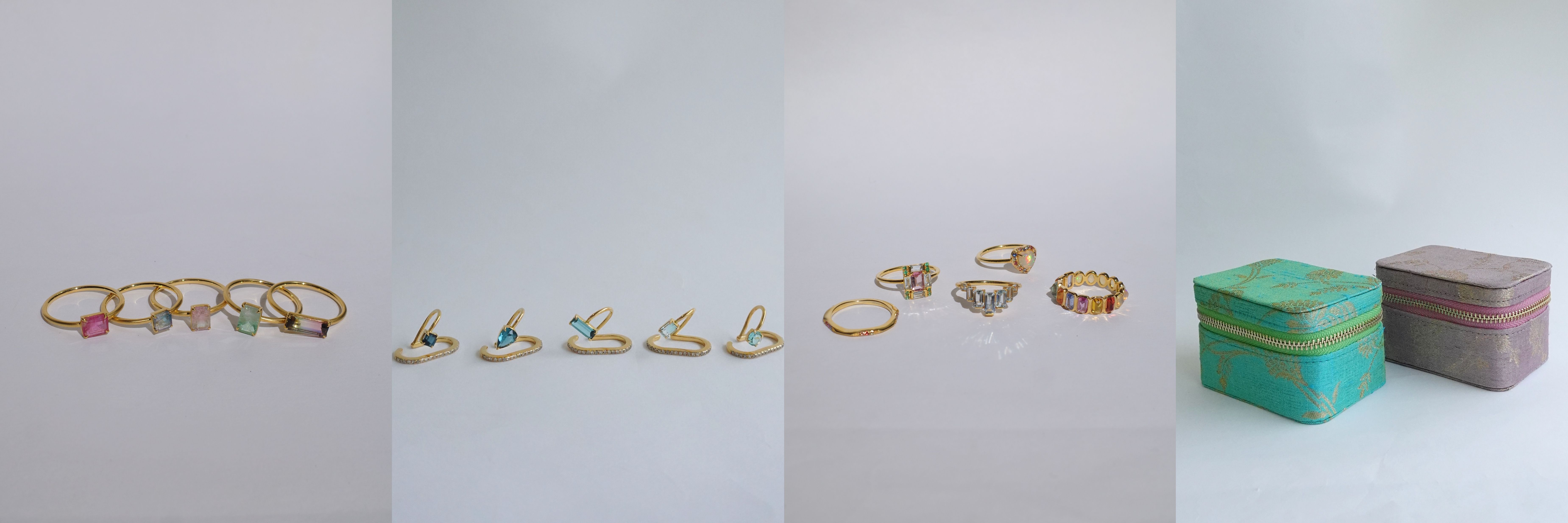 ARTIDA OUDの8周年限定ジュエリーと、 IÉNA が特別にセレクトしたカラーストーンジュエリーが彩り豊かに並びます。