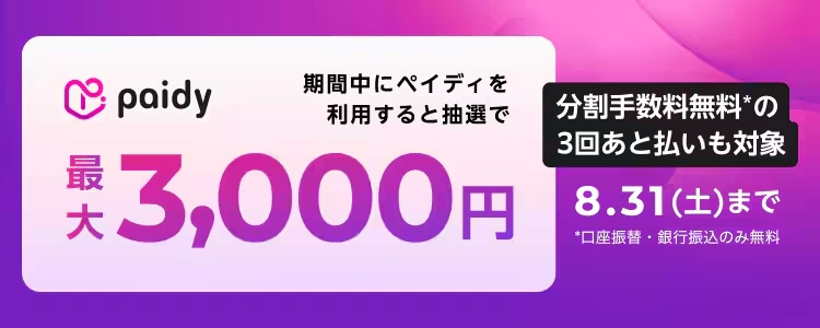 ・株式会社Paidyは本キャンペーンを、キャンペーン期間であっても予告なく変更または終了する場合がございます。