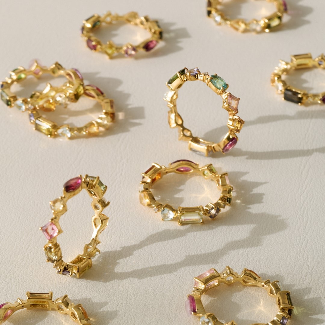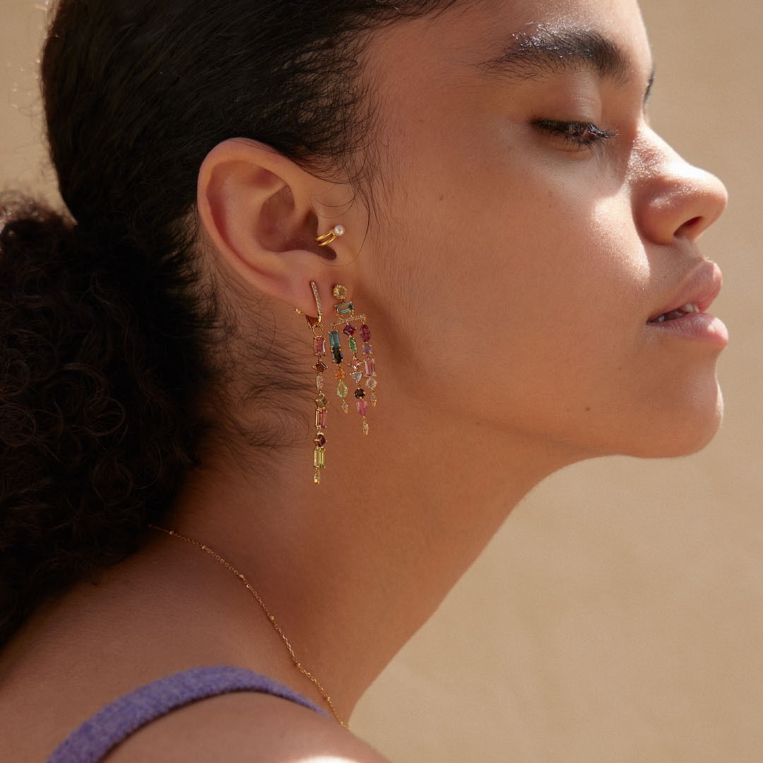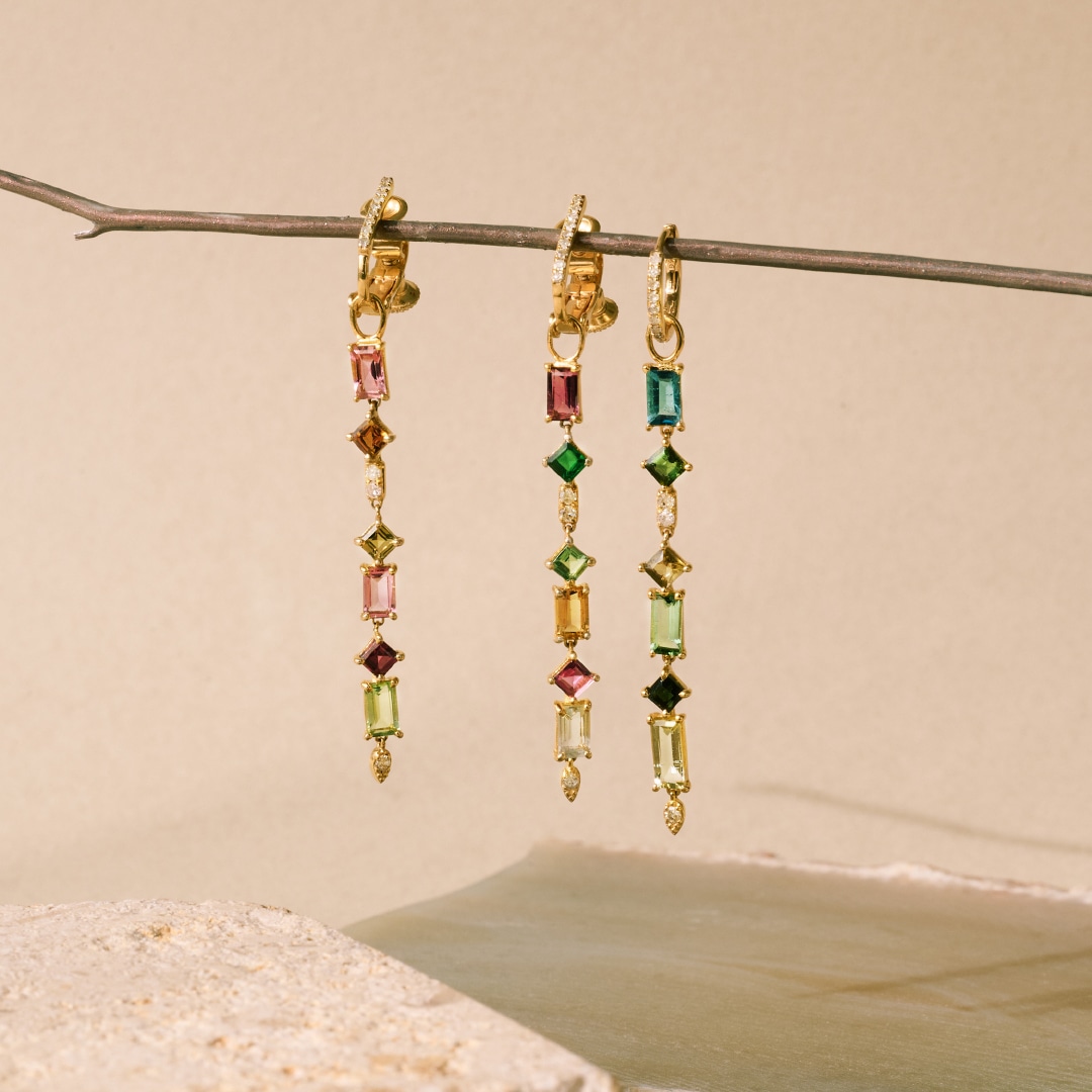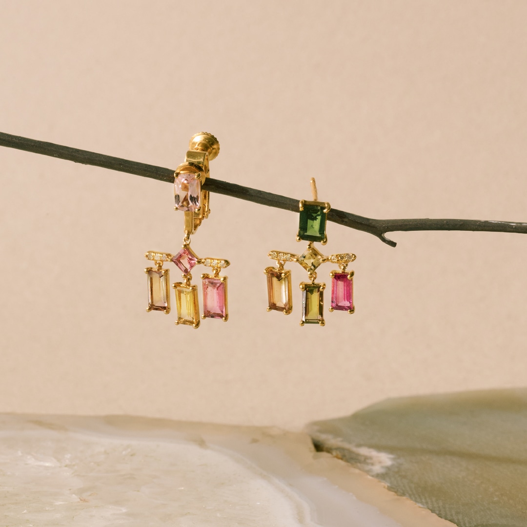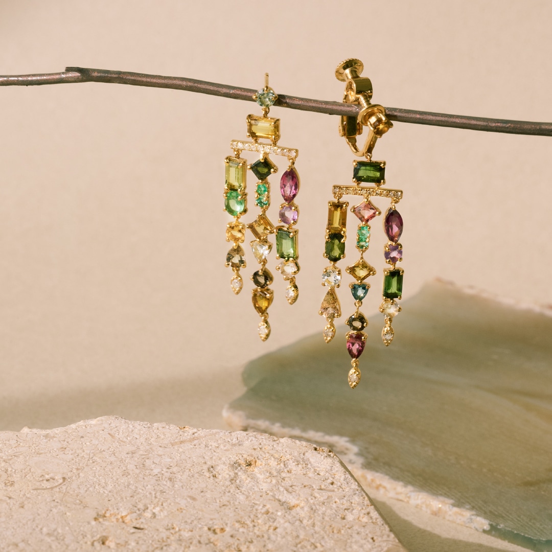 絢爛な輝きを放つ、色とりどりのマルチトルマリンを連ねたシャンデリアピアスやエタニティリングをプレゼント!