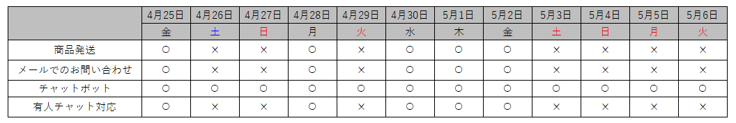 2025年4月21日(月)~2025年5月6日(火)までのご注文分は、最長で通常のお届け+約2週間